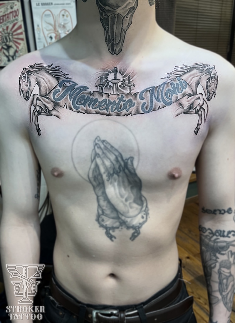肩の付け根には馬を2頭。