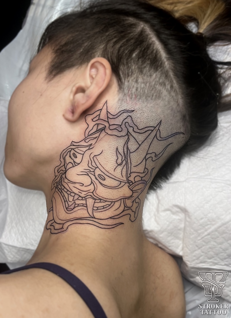 首に般若。