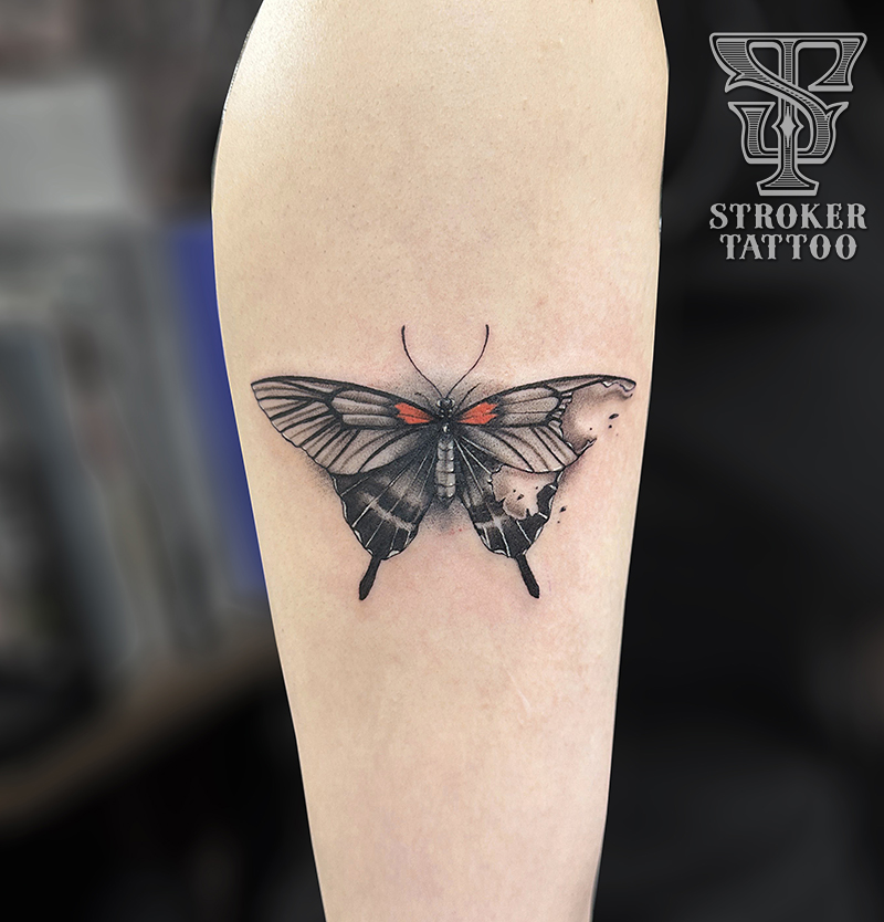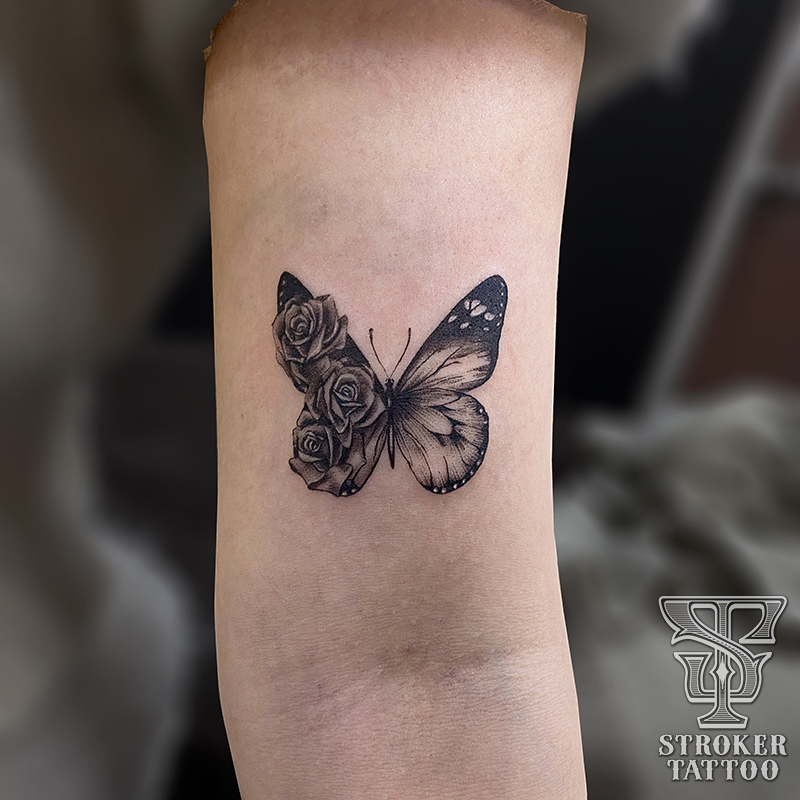 ちょうちょ Posted on 2023年7月7日 in Tattoo作品【ガールズ】 アヤカです(__) 蝶々のタトゥーをご紹介。 バラと蝶々。 名刺サイズに納まる大きさでした。 施術時間は2〜3時間ほど。 ありがとうございました。 お次は黒い蝶々。 お名前はナガサキアゲハというらしいです。 お腹の膨らみや、足の描き込みなど お客さんのこだわりが詰まったタトゥーです。 ありがとうございました。 関連記事はこちら No related posts.