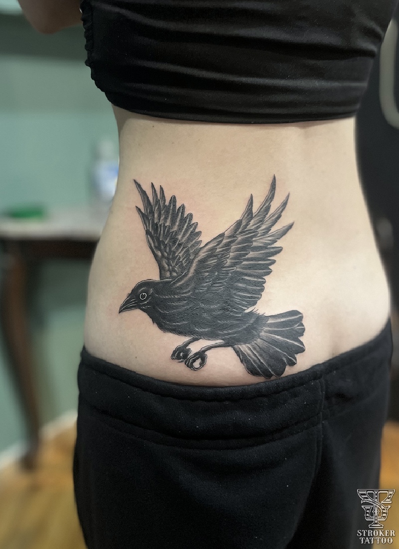 彫り上がりの線の太さが好みではなかったとの事でモチーフは鴉でカバー。