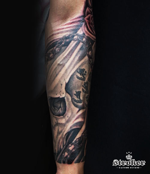 クサリスカル・$薔薇・トランプ・サイコロのtattoo。