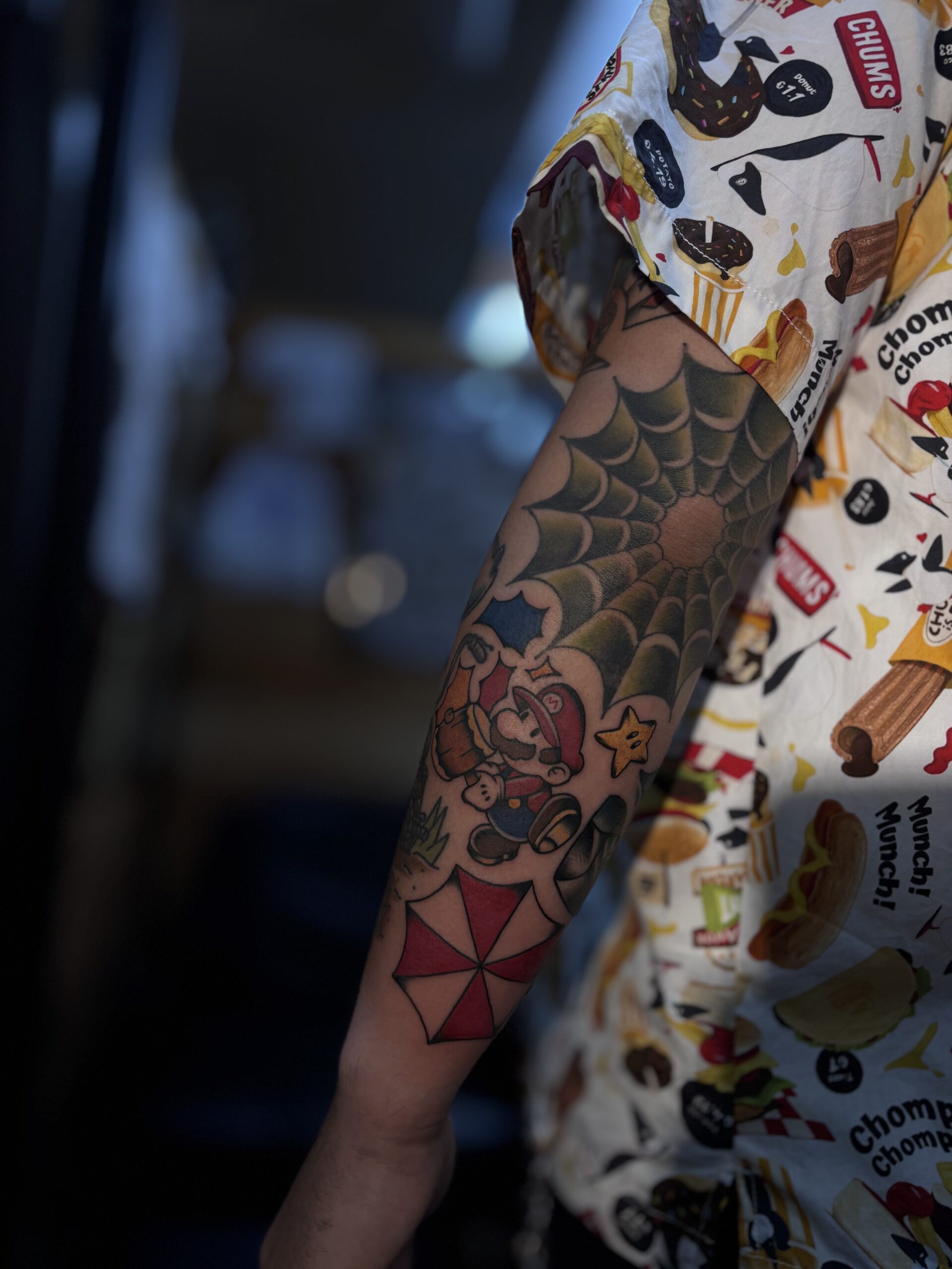 ゲームが大好きなお客様、キャラクターのタトゥーがかなり入っています。