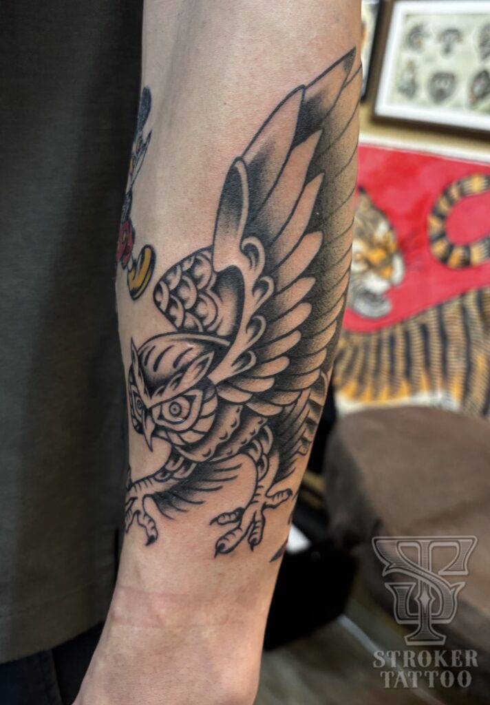 フクロウのトラディショナルタトゥーです。