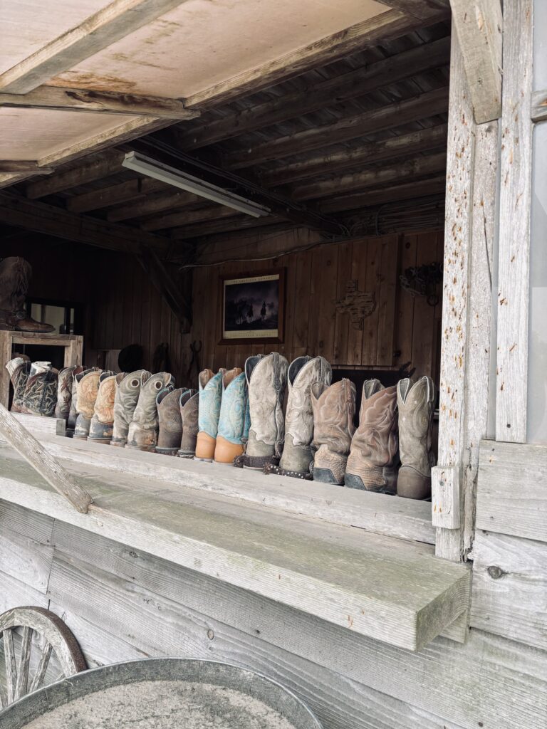 馬小屋の隣にズラーーーーっと並ぶ使い古されたウエスタンブーツ
