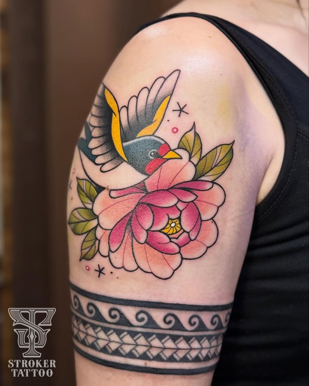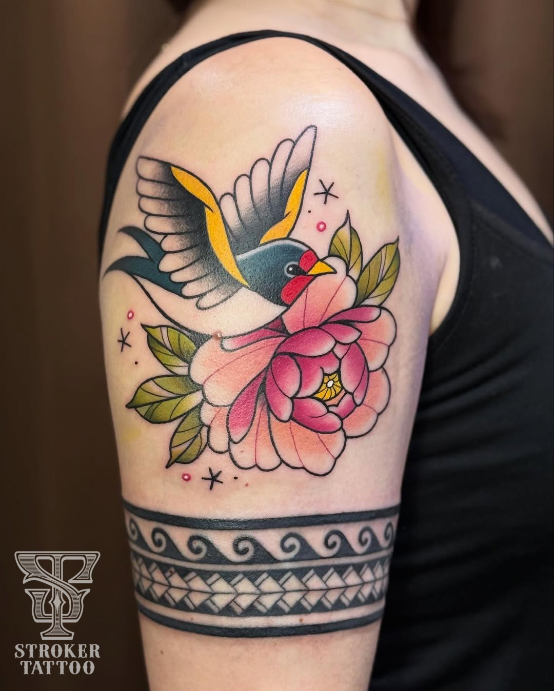 ツバメと牡丹のタトゥー。