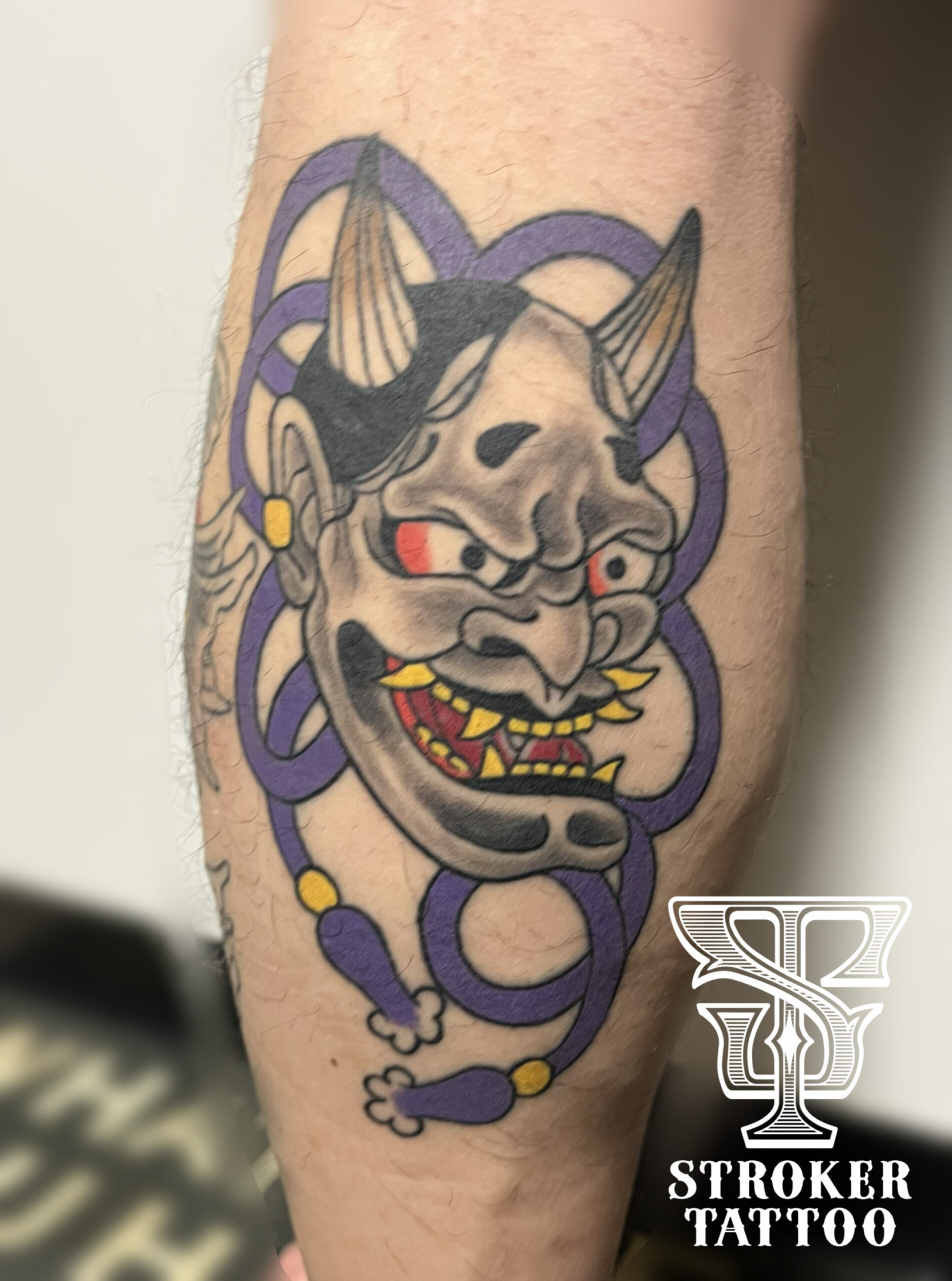 デビュー直前の練習彫りにて父のふくらはぎに彫った般若です。