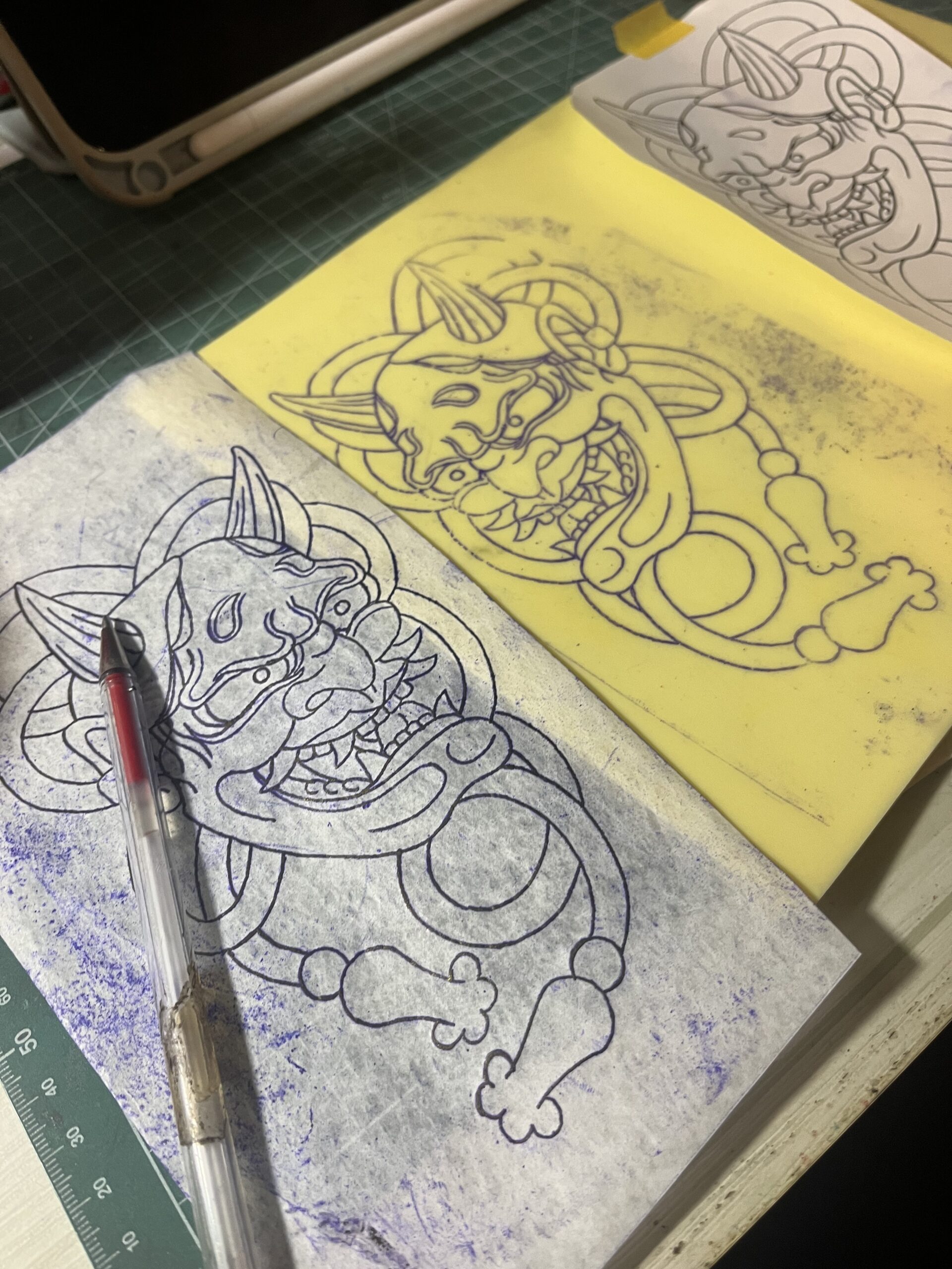 ちなみに裏話なのですが、今回の般若のデザインは全てアナログで描いています。