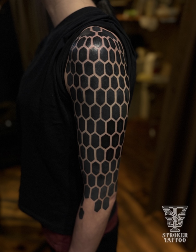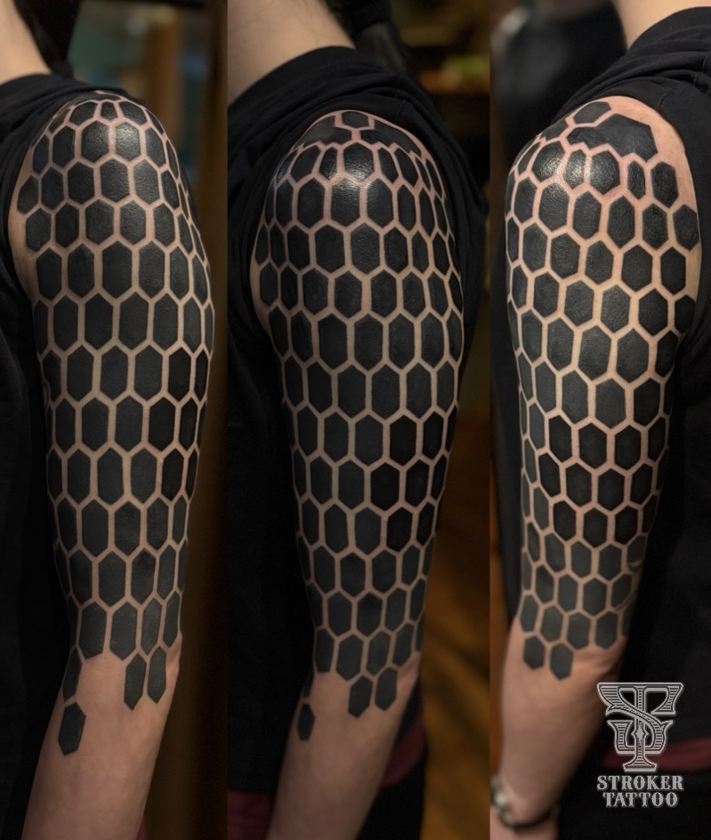 今回は、ハニカムパターンを用いたブラックタトゥーのスリーブをご紹介します。