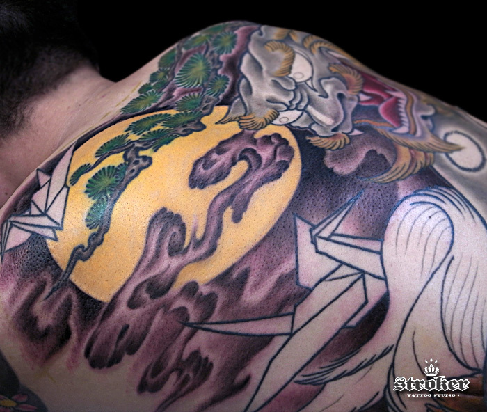 背中に唐獅子。。。