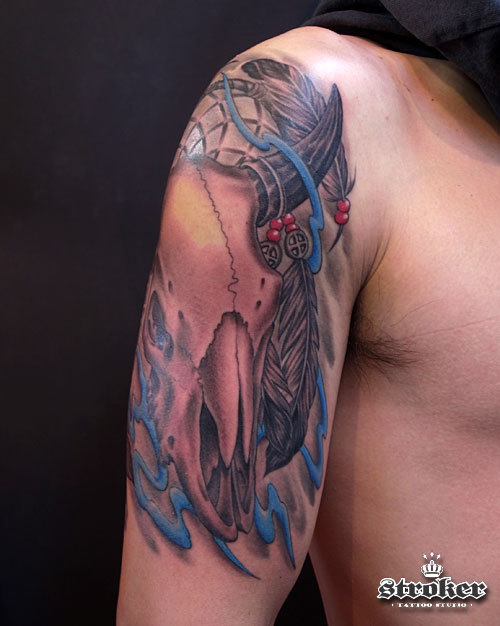 羽の根元にはメディスン・ホイール(円十字)を。
