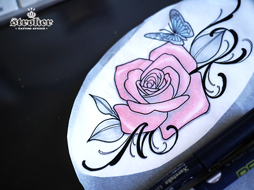 最初に描かせていただいた下絵は薔薇や蝶々の形が