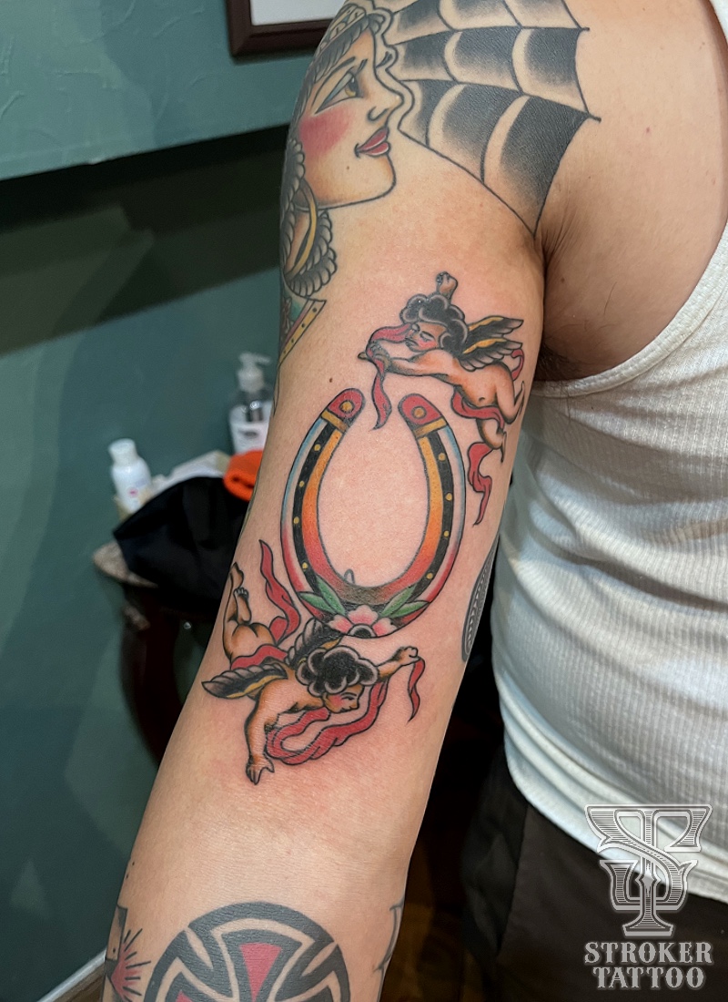 ブラックアンドグレー・船・天使と馬蹄。