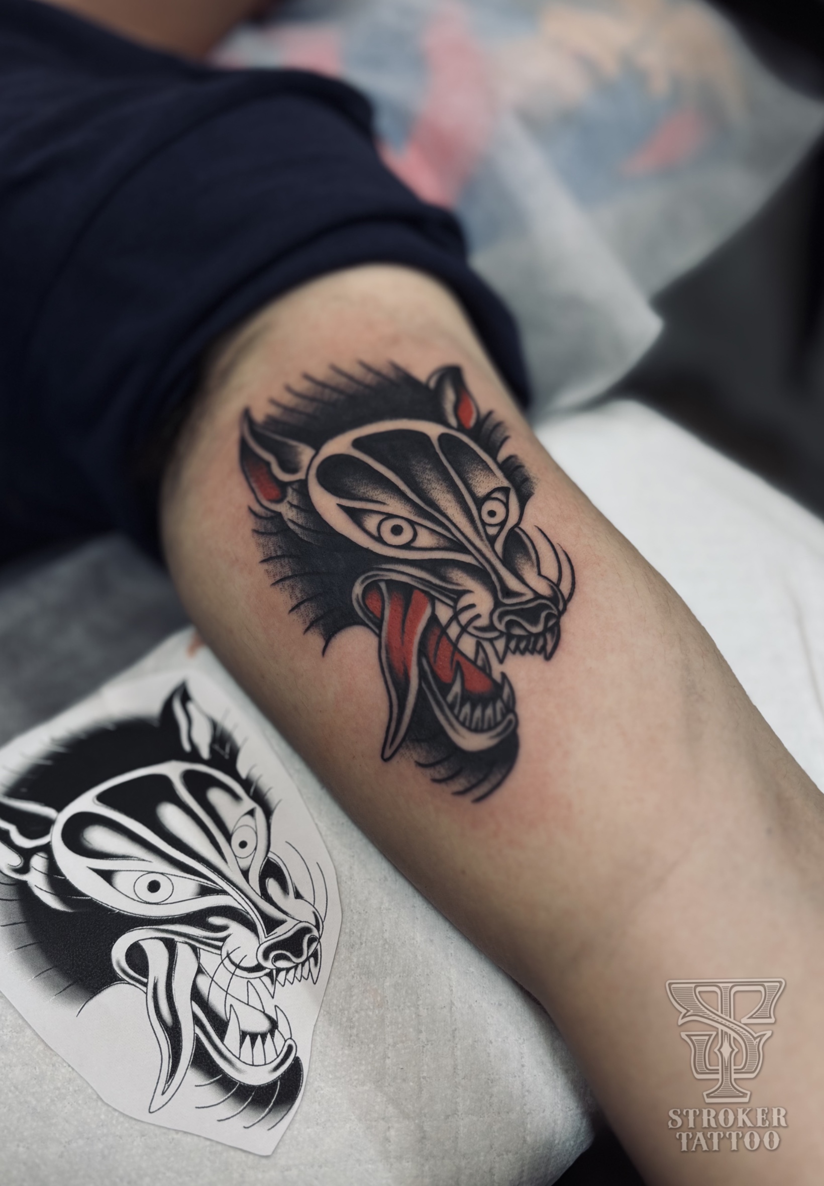 お入れしたのは二の腕にスマホサイズほどの狼です。