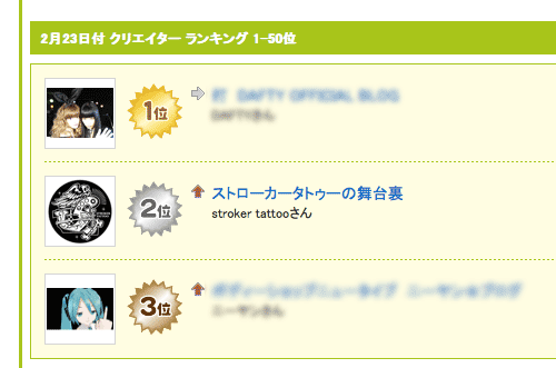 クリエイターカテゴリーでのランキングが