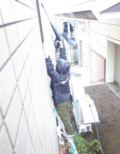 キョウヘイが外窓掃除に