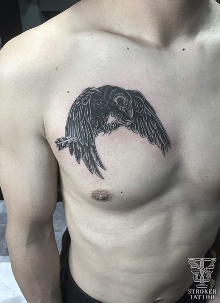 胸に手のひらサイズ程で彫らせていただきました。サイズはそこまで大きく無いものの