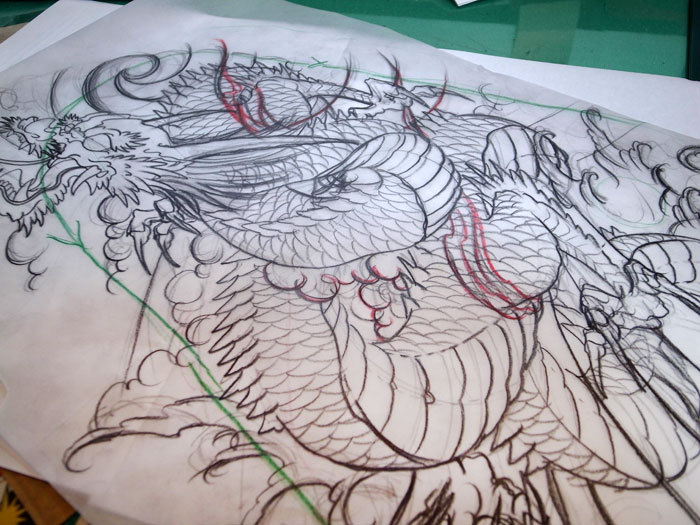 一匹の龍を描くのに、納得できるまで描き込もうとすると、