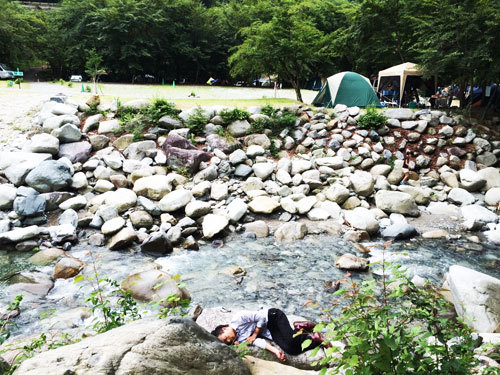 強い日差しの中、川の水がすごく気持ちよくて、