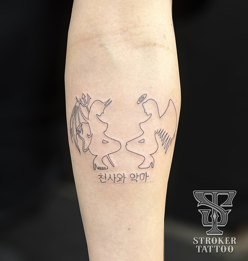 前腕に天使と悪魔。