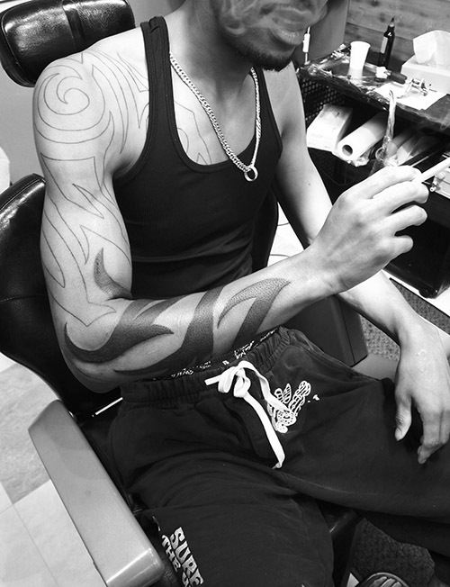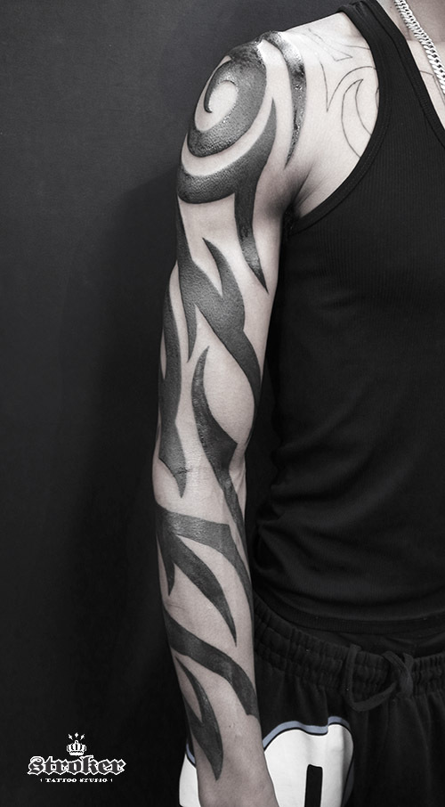 太い唐草模様のトライバルを基調として、