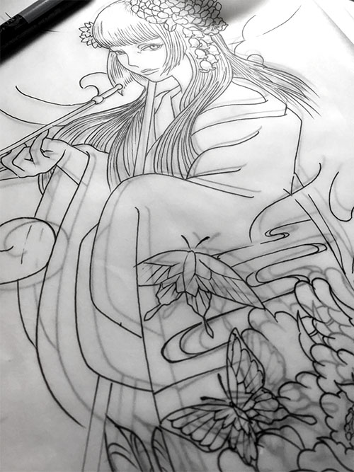 今回は肩に蝶々をカラーで◎