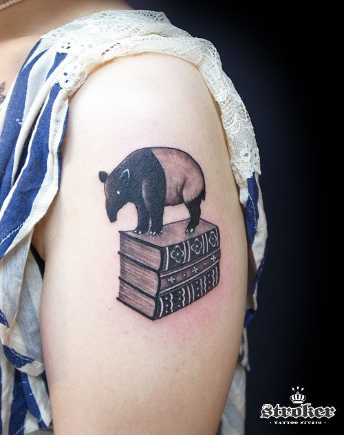 【デッサンしたようなタッチのバクを本に乗せたいです☆】