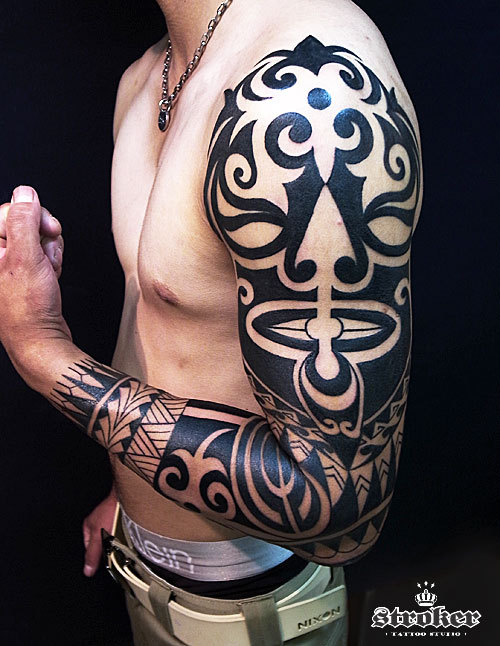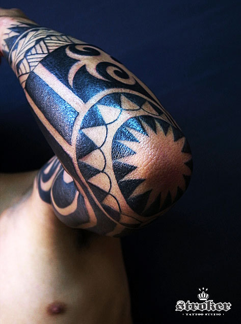 2月から彫り進めた腕1本のトライバル。
