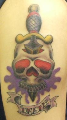もう12月の後半に入ろうとしていますが、2ヶ月くらい前に筋彫りだけ終わってはいたものの、なかなか時間がとれなくて色が入らずじまいだったスカル、年内には完成させたいと先日完成しました。
