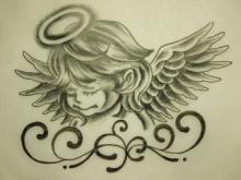 今日は何枚か天使のラフを起こしていたのですが、思わず「しゅん」の顔の天使を描いちゃいました。