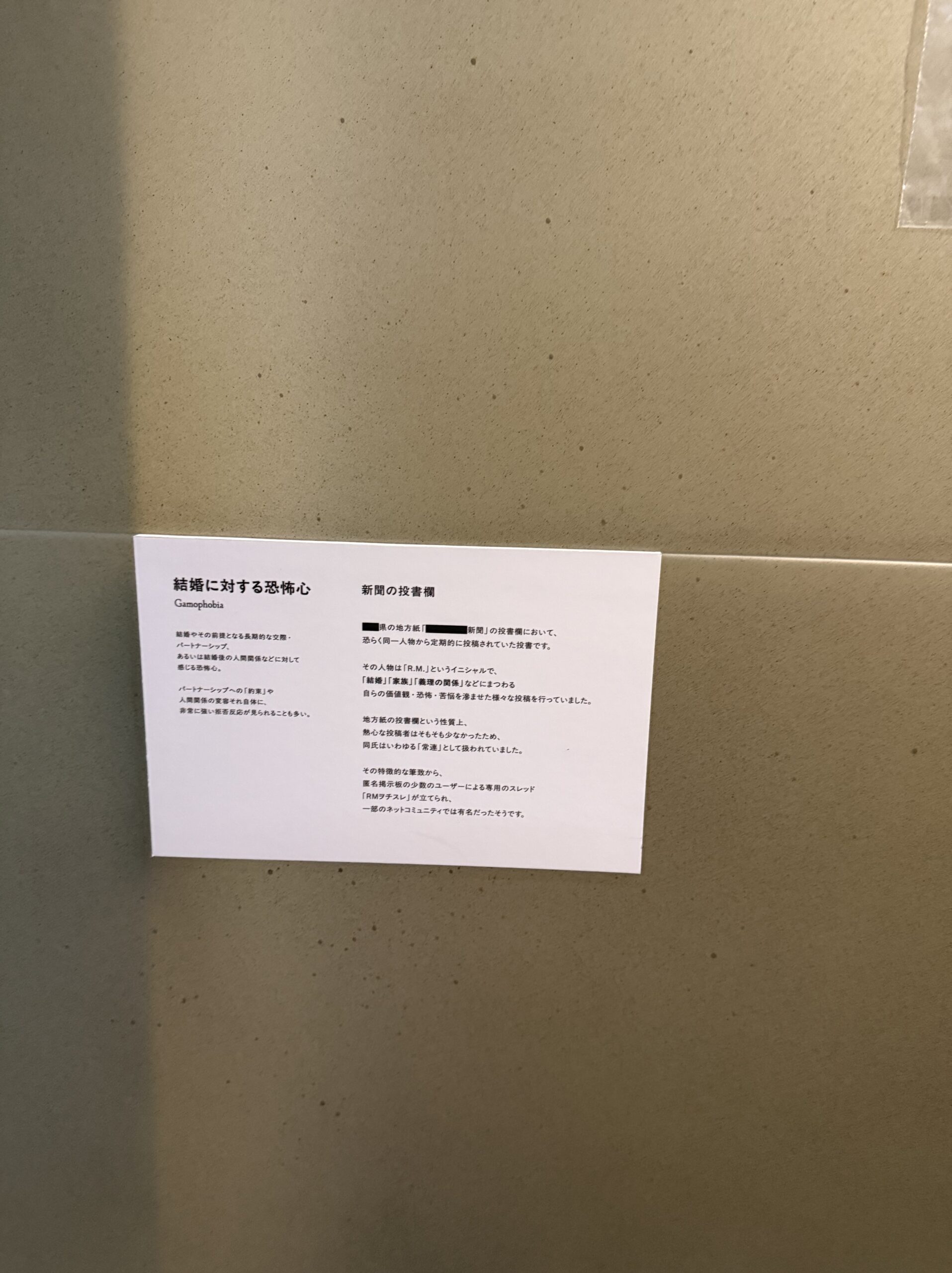 この展示会では、世の中に溢れるありとあらゆる「恐怖心」を抱くものが展示されています。