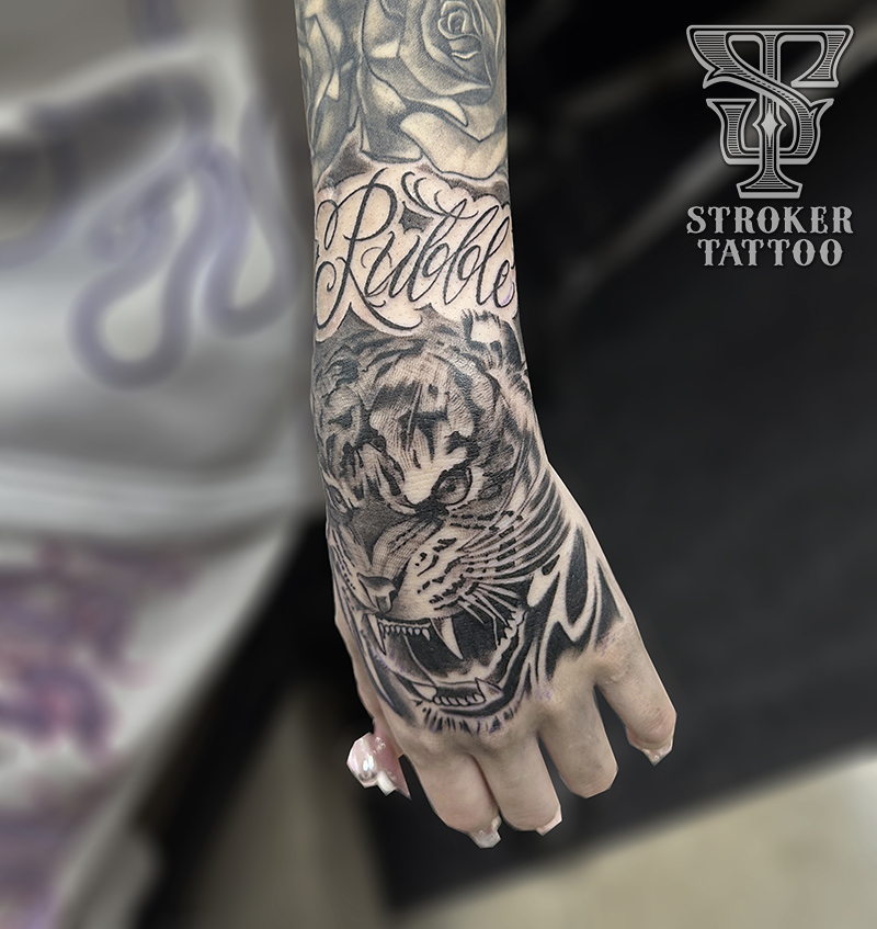 手の甲タトゥー Posted on 2024年5月31日 in Tattoo作品【ブラック&グレー】 アヤカです(_ _) 今回は手の甲のタトゥーをご紹介。 バラと時計。 人気のあるモチーフが ひとつにまとまったデザインですね。 施術時間は4時間ほど、 ありがとうございました◎ お次は虎と手首にレタリングも。 こちらは施術時間5時間以内でした。 手の甲は痛みも強く、 アフターケアも難しい部位ですが、 埋まっているとかっこいいですね◎ ありがとうございました。 関連記事はこちら No related posts.