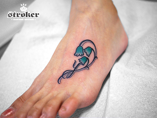 まずこちらは女性の足の甲にスズランとイニシャル。