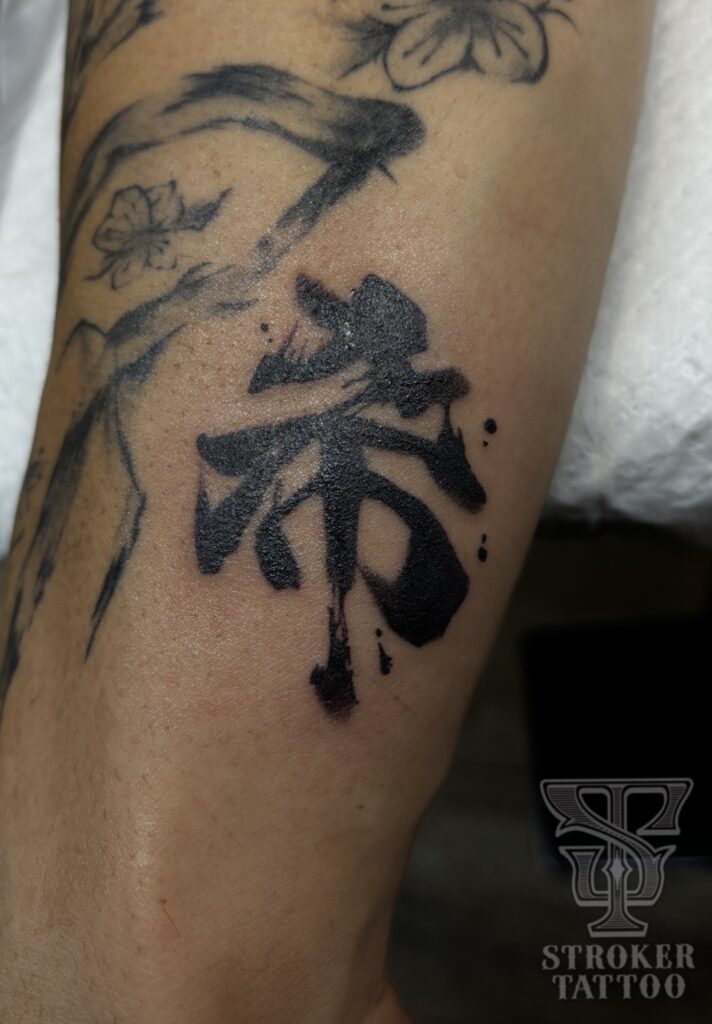 さりげなく墨汁の濃淡を表現して、他のタトゥーとのタッチに合わせてあります。