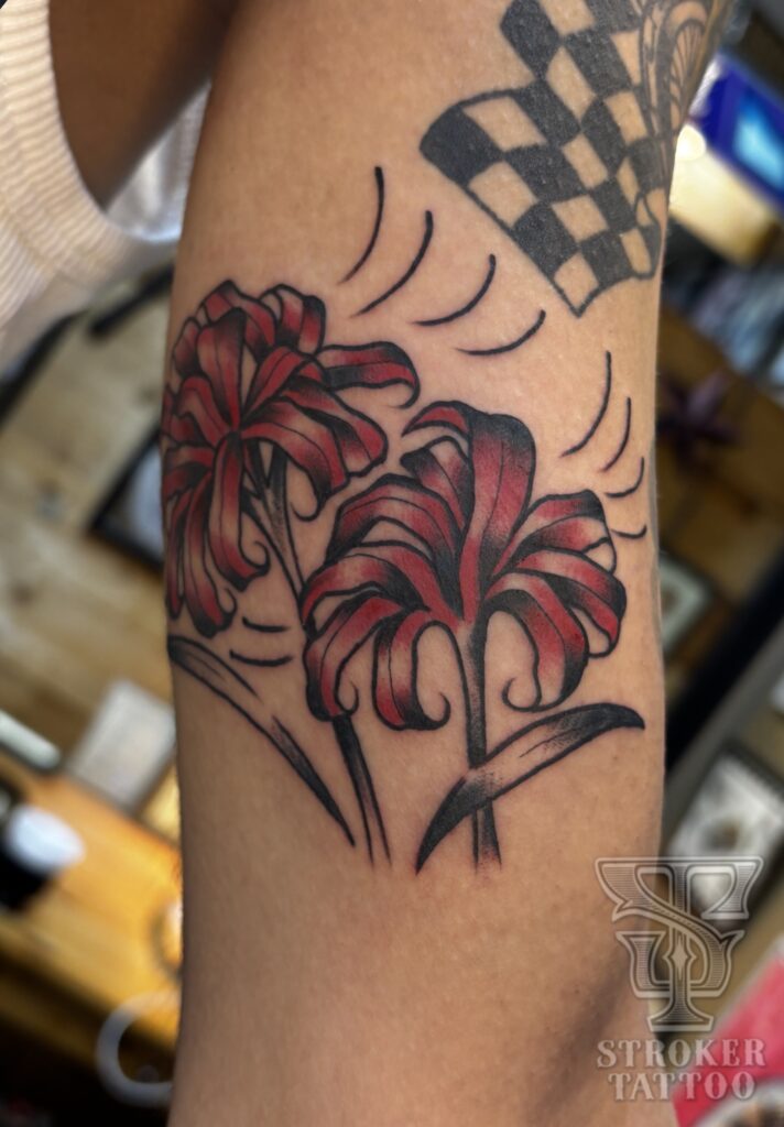 和のイメージが強い彼岸花ですが、太めの線で、アメリカンな雰囲気に近づけました。