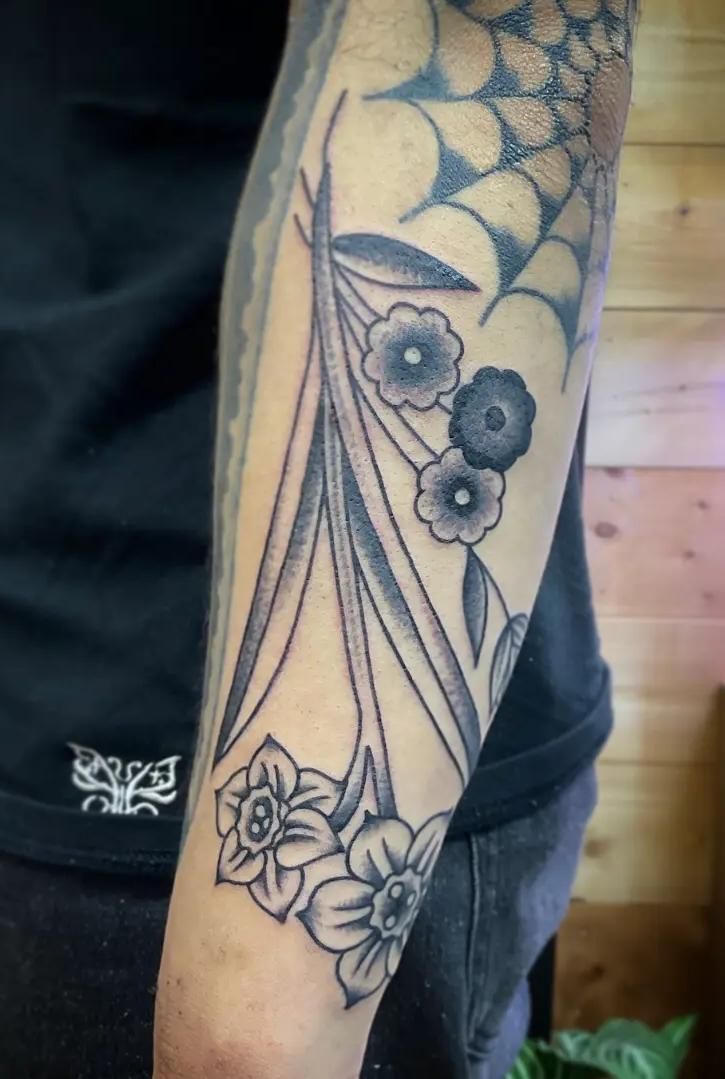 水仙 Posted on 2024年5月11日 in Tattoo作品【ブラック&グレー】 こんばんは。 エリカです。 今日はアメトラのお花のデザインです。 二の腕にスマホより大きめの黒色だけのデザインです。 水仙2つと小さいお花で纏めました。 . 💐 関連記事はこちら No related posts.