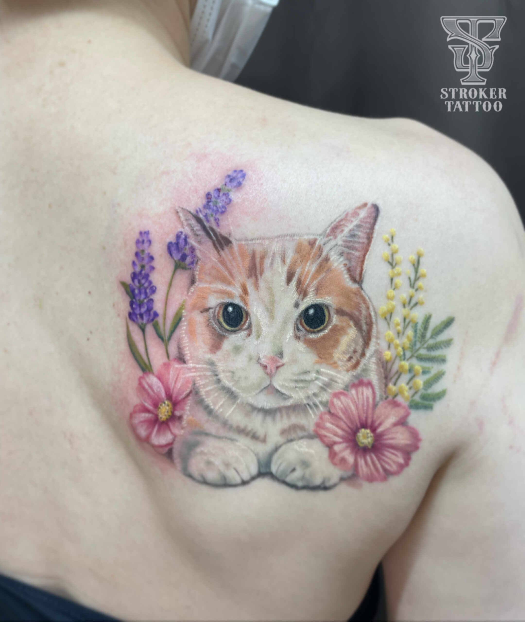 白い毛の猫ちゃんは、毛の色の濃い猫ちゃんたちと違い、白い毛のタトゥーの表現にひと工夫必要となります🐈