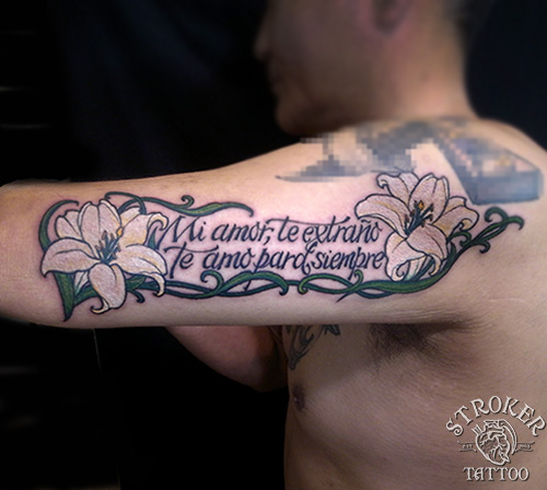 先日仕上がった、百合のtattoo。