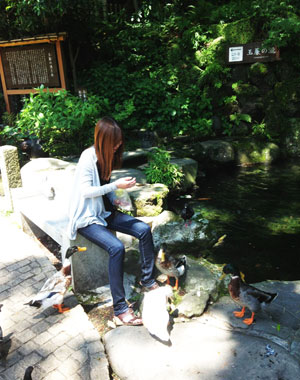 鯉と鴨とアヒルに囲まれる一人動物園。