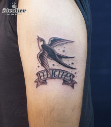 「文字とのバランスを見て、なるべく小さめに鳩を」