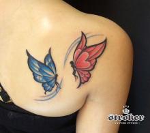 右左の肩甲骨に羽のアウトライン&ちょっとぼかし。