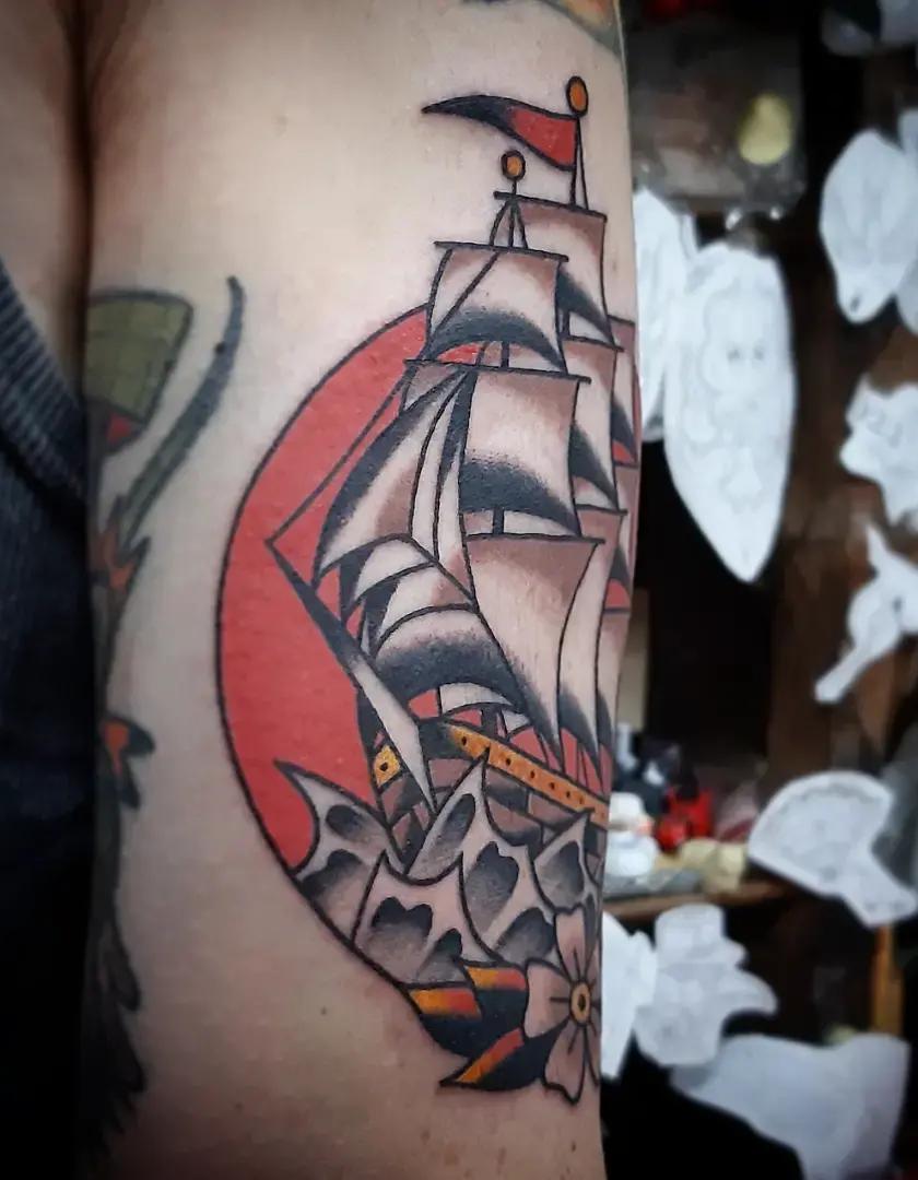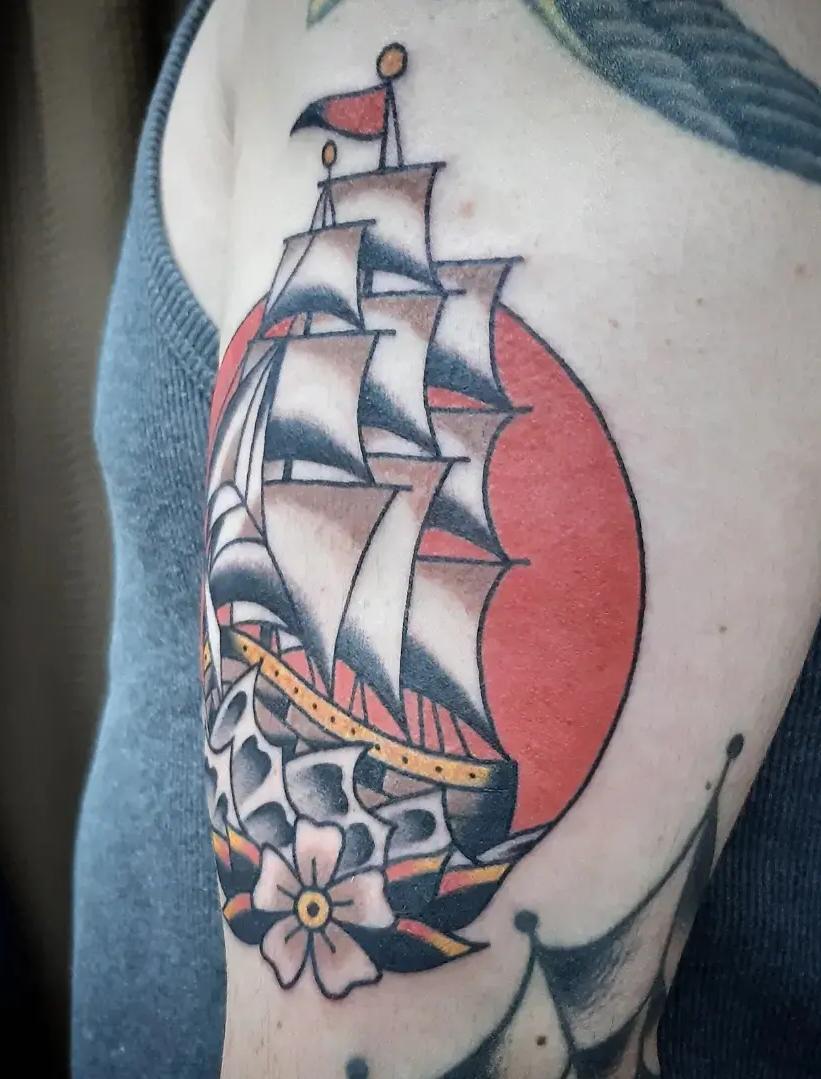 船 Posted on 2023年12月2日 in Tattoo作品【カラー】 こんばんは。 エリカです。 今日はアメトラの船です。 他のタトゥーの隙間にCDケースサイズくらいの船です。 デザインも色合いもシンプルな船です。 . 赤色の丸を入れたためステッカーっぽくなりました。 🏵️🌊 ⛵🔴 関連記事はこちら No related posts.