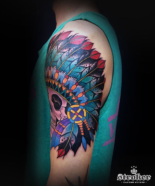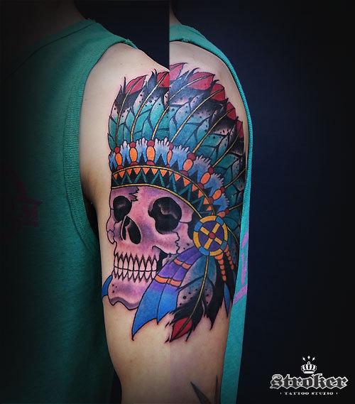 色鮮やかに、インディアンスカルのtattoo☆
