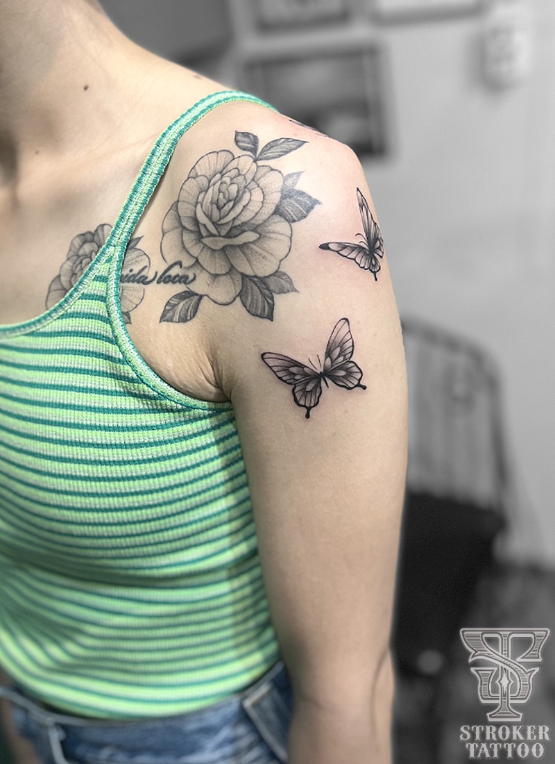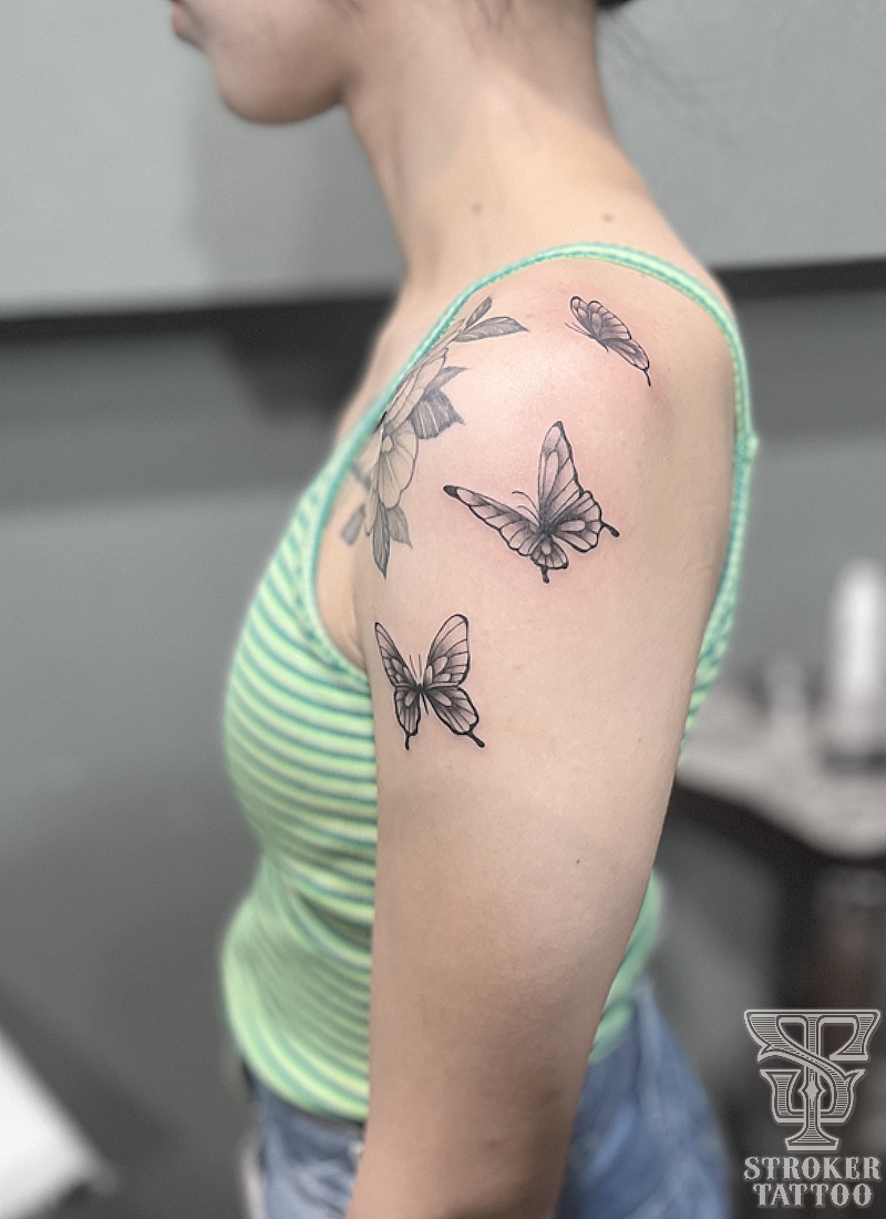 後ろ肩から前にかけて3匹彫らせて頂きました。