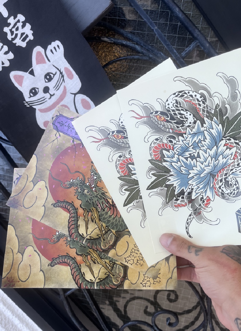 ステッカーの代わりに彫師が描いたデザインのポスターを