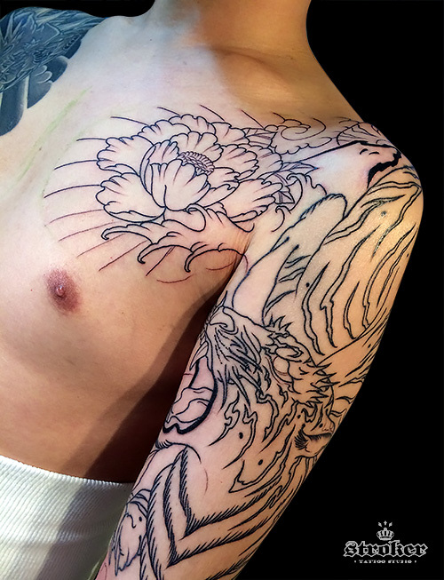 袖七分白虎牡丹、メデューサひざクモの巣。。。