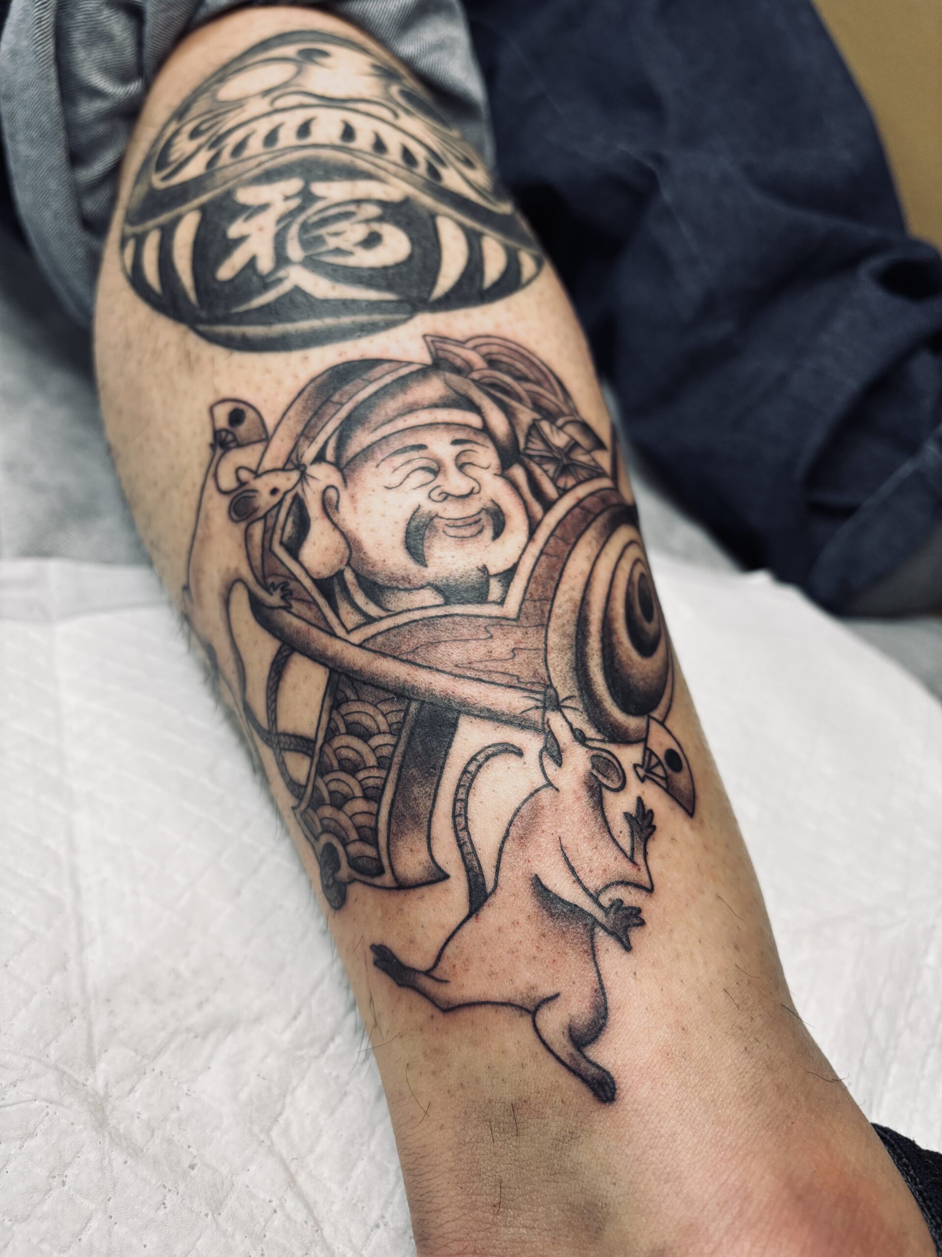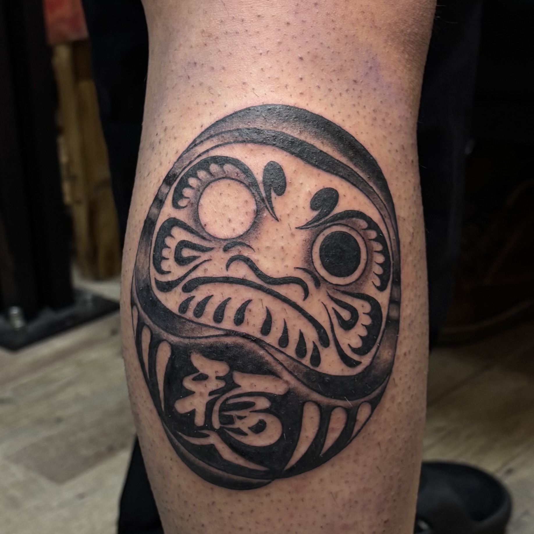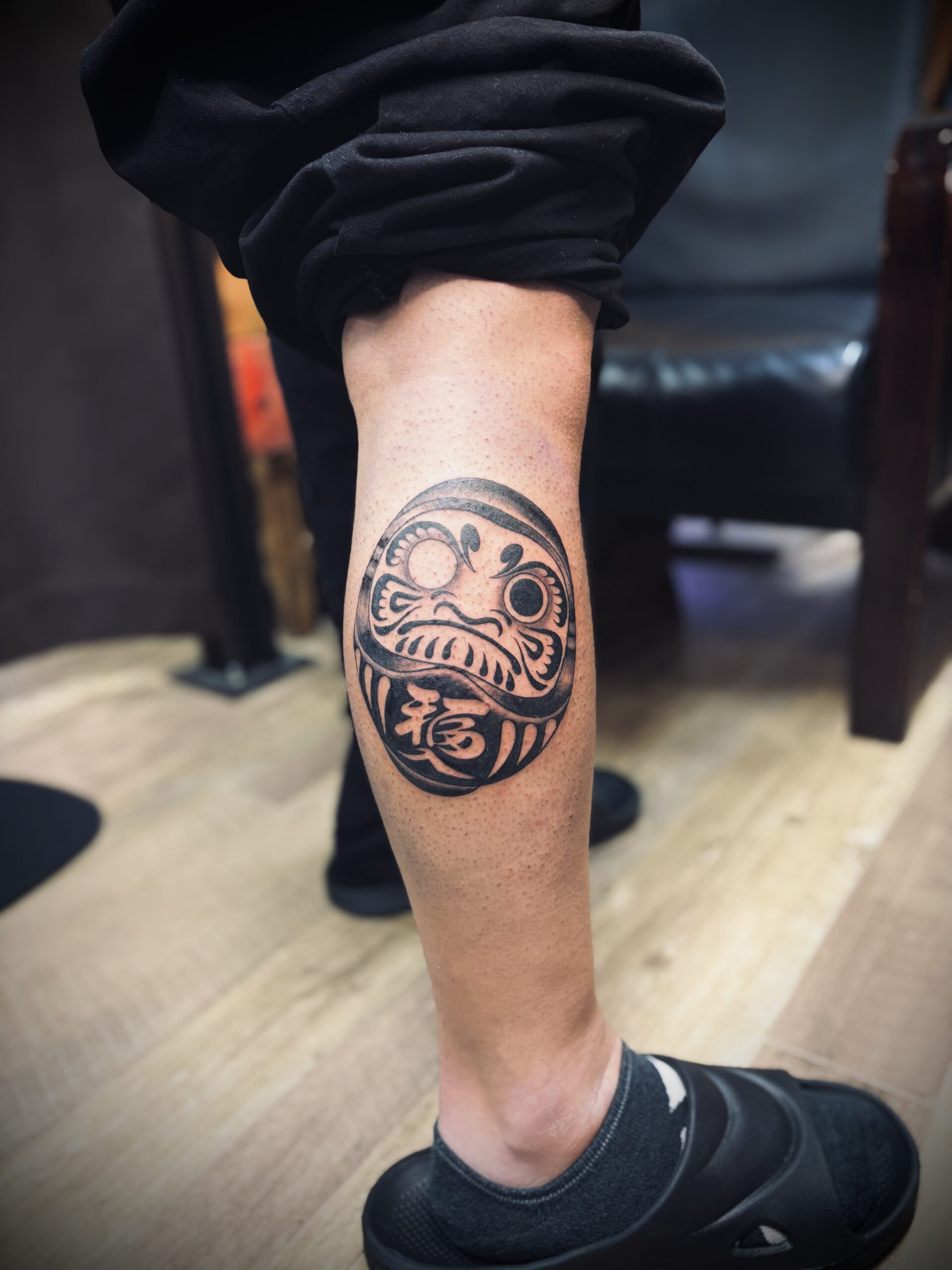 黒でふくらはぎに、ハガキサイズほどでお入れしてます。