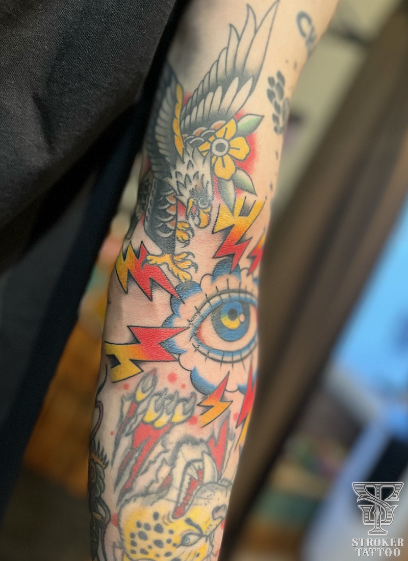 トラッドデザインで目◉(キラーパンサー、骸骨上のレタリングは他彫り師◉)