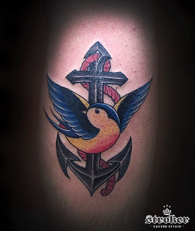前回仕上げたイカリとツバメ。