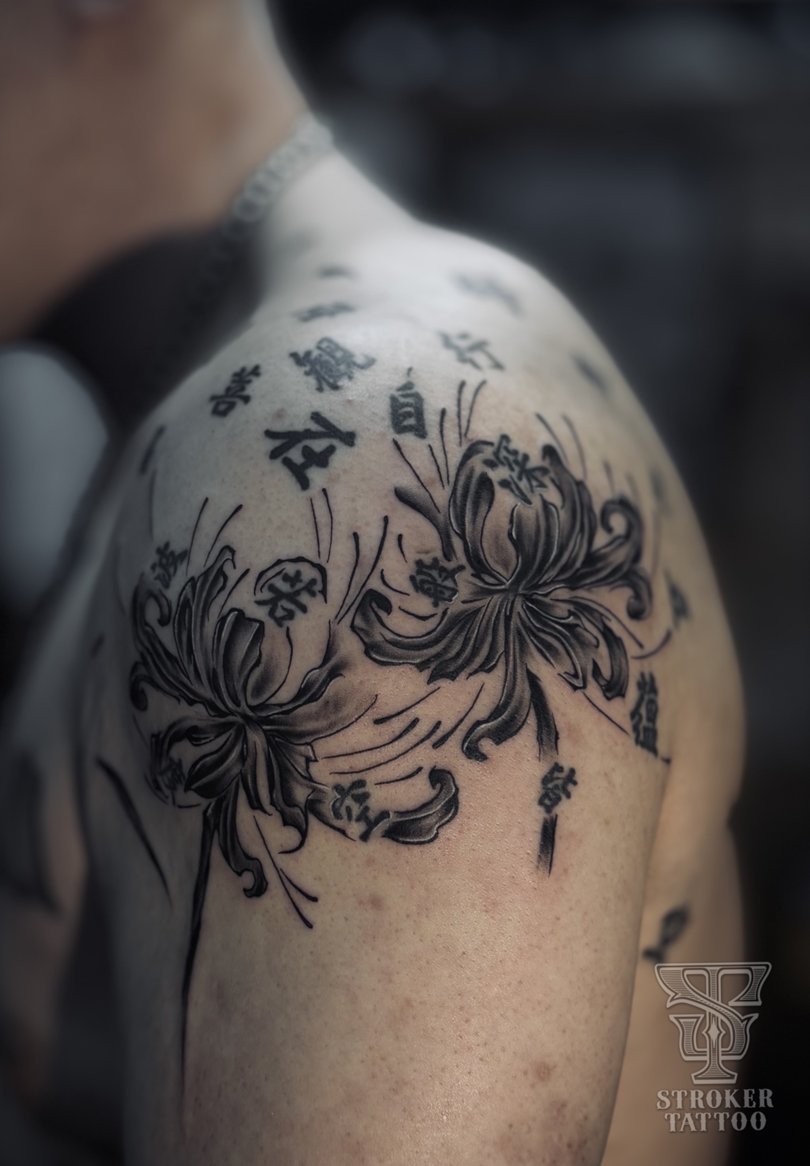 墨のような雰囲気と、すでに入っているタトゥーを考慮し