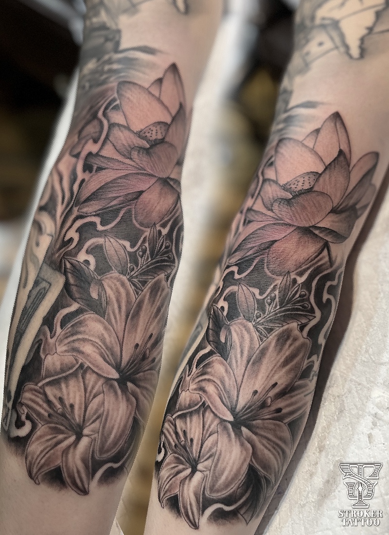 お花と組み合わせたブラックアンドグレーのデザインニ選